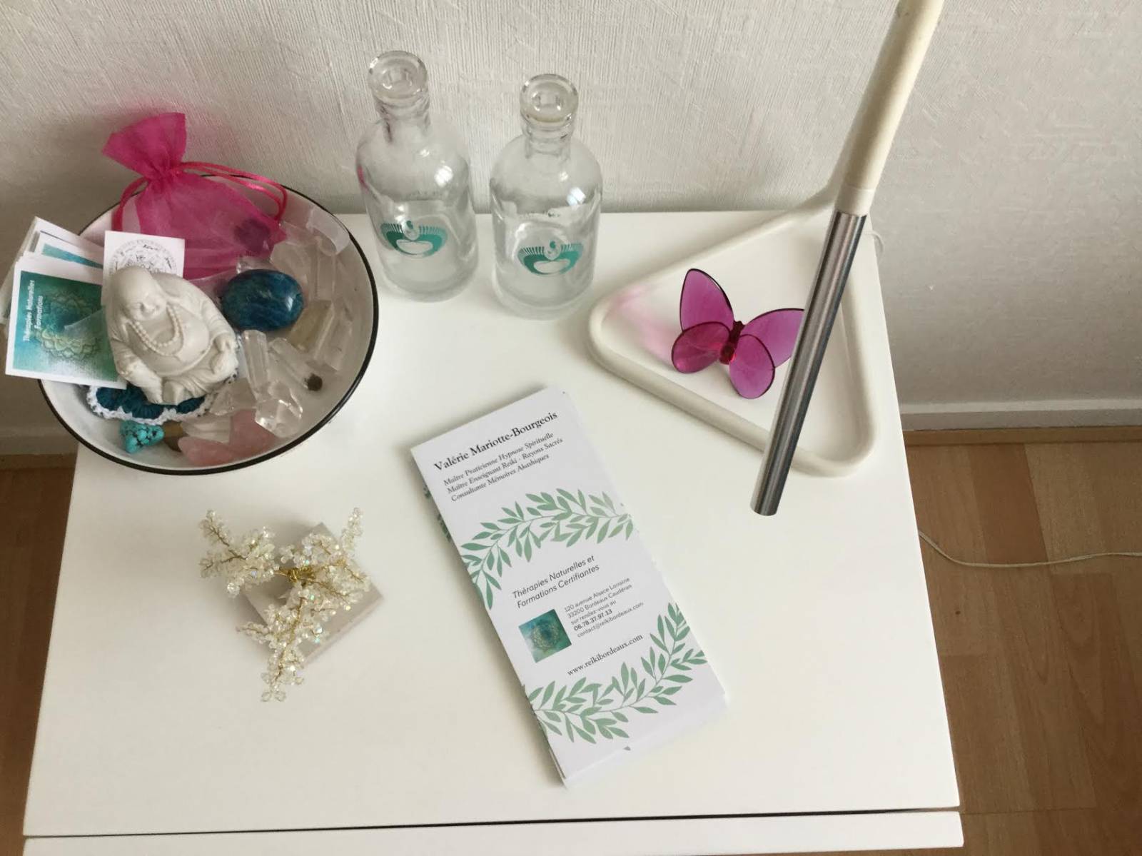 J'utilise également un bol de cristal de roche, pour mettre votre corps en résonance avec l'énergie cristalline et amplifier les effets bénéfiques de votre soin.