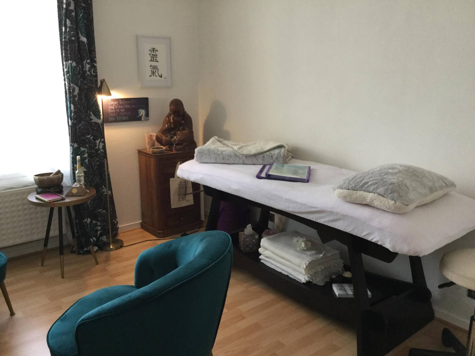 Nous prenons un temps de parole avant le soin qui est variable selon chaque personne, afin de faire une analyse de vos antécédents. Puis, vous êtes confortablement allongé sur une table de massage, habillé. Une musique relaxante accompagne ce moment de bien-être.